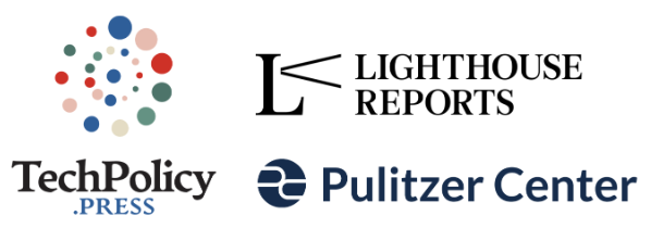 This is a screenshot of an image showing the logos of Tech Policy Press, Lighthouse Reports, and Pulitzer Center; the image is part of the online survey call floated by these organisations.
