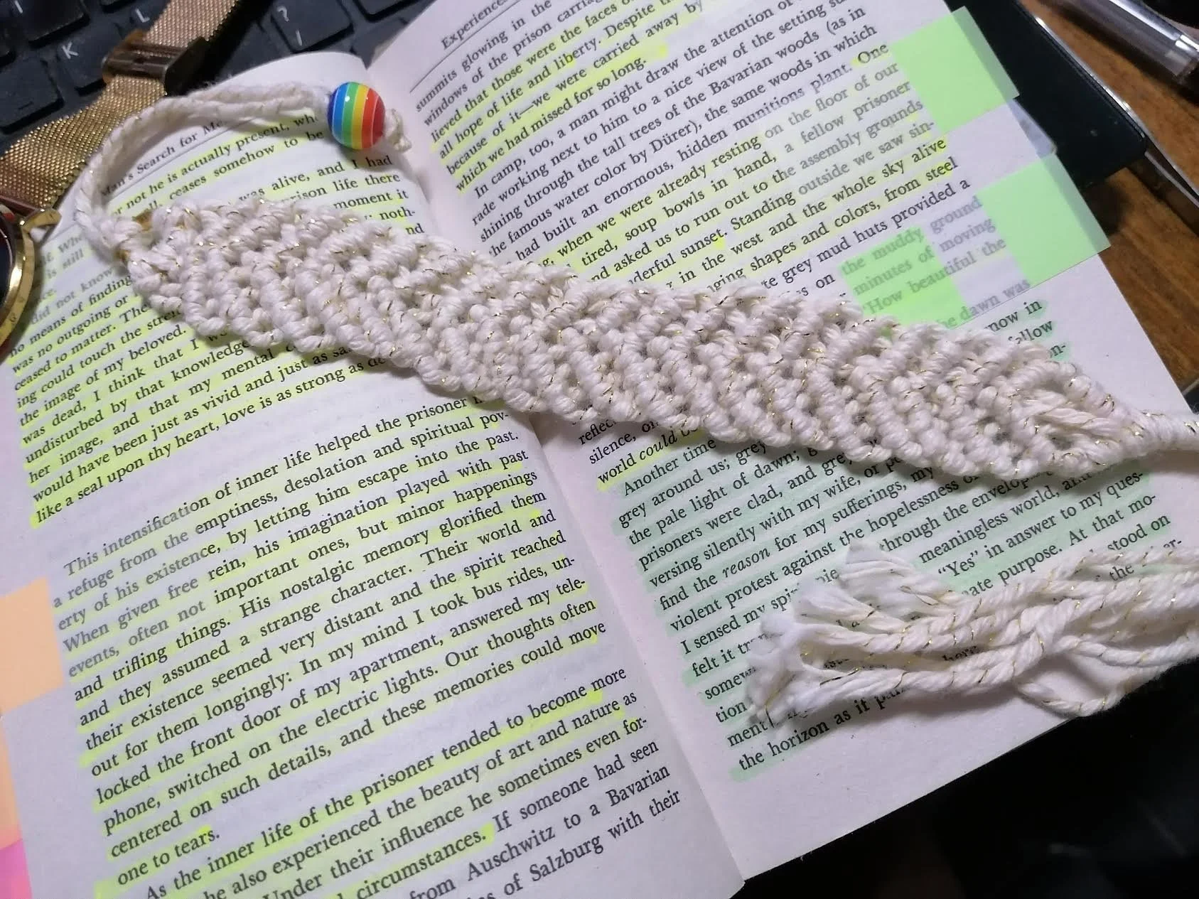Although her bookmark is mostly white—apparently intended to march the colour of a book’s pages—Ms. Annique stressed the need generally for using colourful cords: given that white cords remain overused, she said.