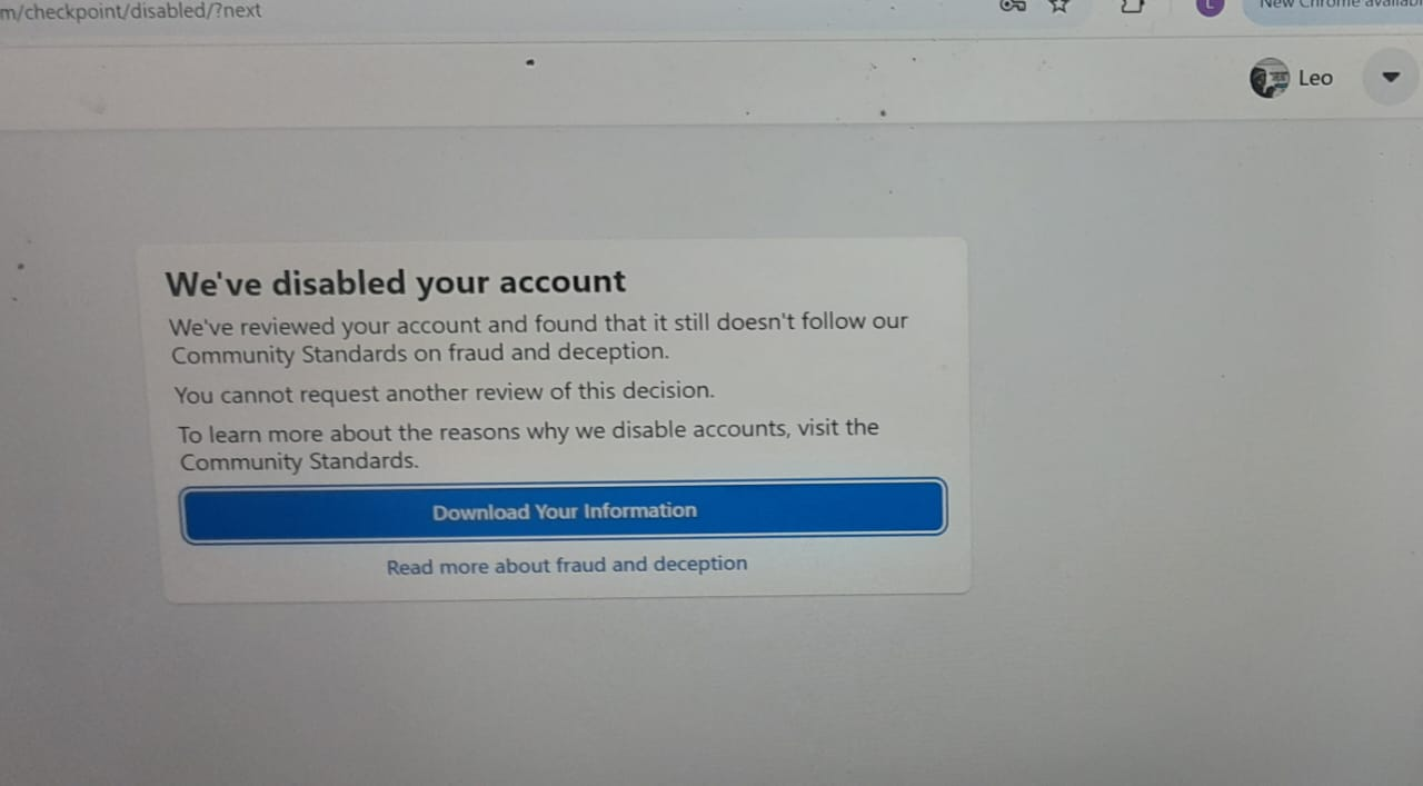 However, Igwe’s efforts went in vain when on January 12, he was given what reads like the final verdict by Meta Platforms on his appeals. The verdict, whose screenshot was shared by Igwe with Thoughtfox (and is posted below), states that his account had continued not to follow Meta’s ‘Community Standards on fraud and deception.’ Perhaps more important, the verdict adds the following: ‘You cannot request another review of this decision.’