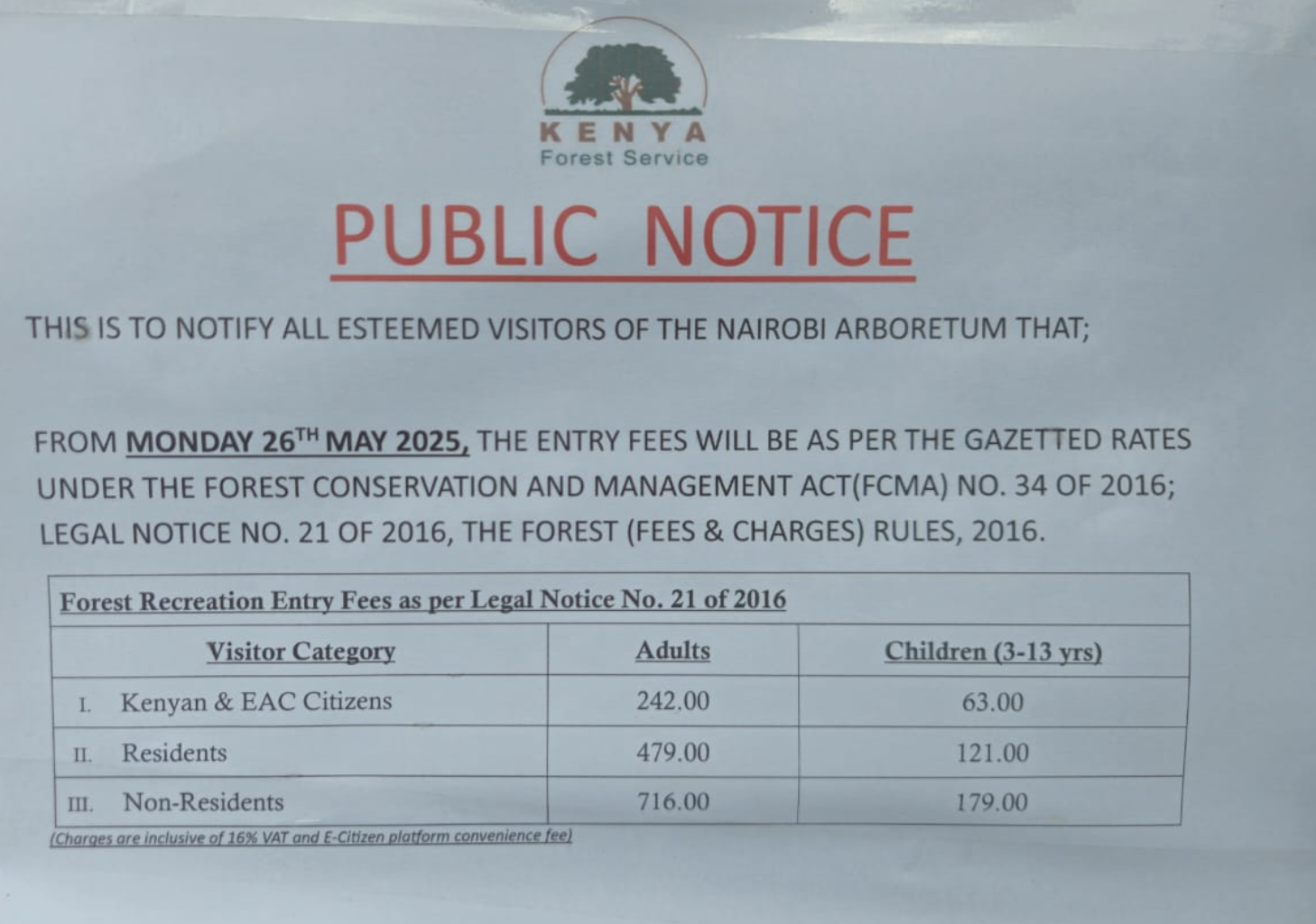 A petition opposing the sharp increase in entry fees at the Nairobi Arboretum has gained significant public support since it was launched by Gregory Mwendwa on May 30, 2025. The online campaign, hosted on Change.org, urges the Kenya Forest Service (KFS) to reverse the revised rates that took effect on May 26, 2025.